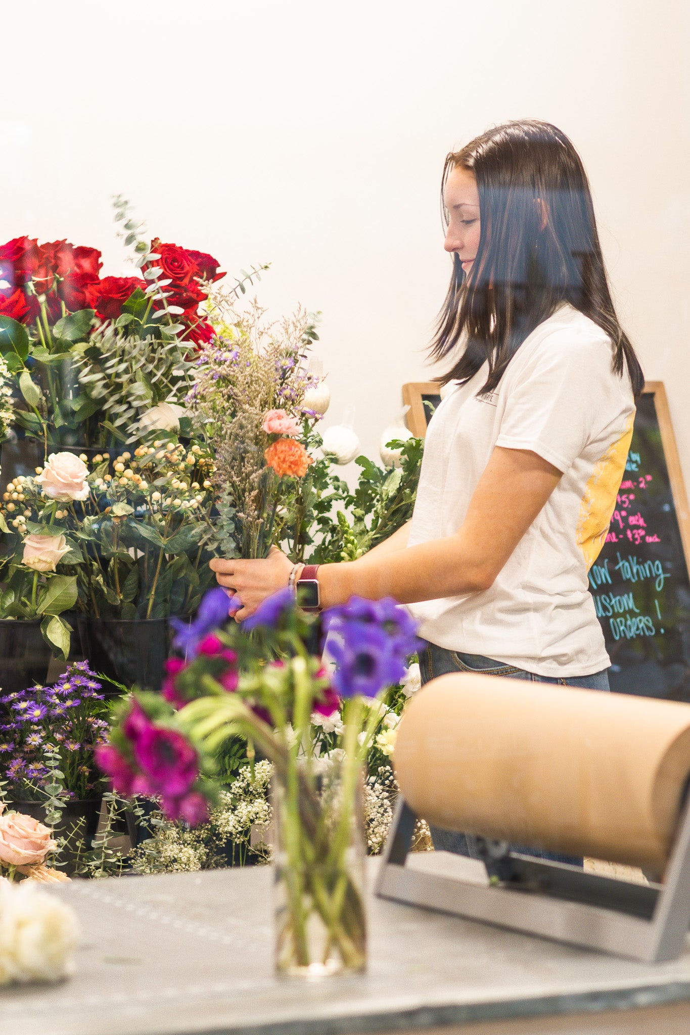Feel free to ask one of our florists for help when pairing flowers and greenery, but at the Bloom Shoppe, we never judge but encourage creativity!